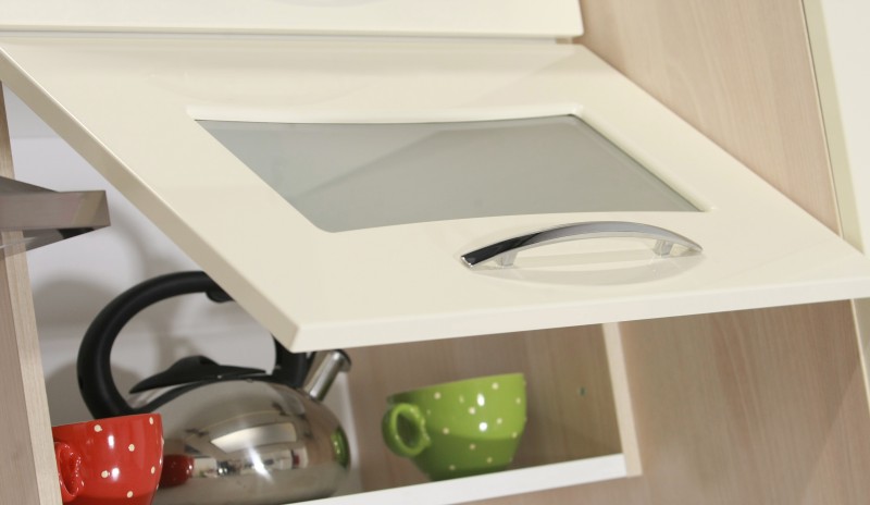 Kuhinja ima fronte iz MDF materiala, visokega sijaja in debeline 19 mm.
