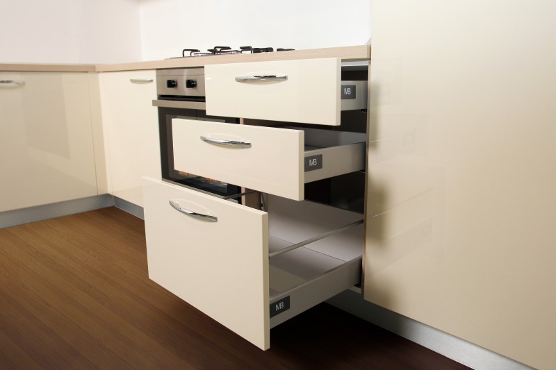 Kuhinja vsebuje kvalitetno okovje tihega oz. mehkega zapiranja.
